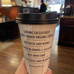 I love donkey! There is nothing bad to say. This was my favorite spot during graduate school to come to and study, get tea and a chocolate chip muffin. The people are so friendly and they really do care. I have made many friends that's to the barista's just generally chatting and getting to know their customers. There is local art work all over the walls, board games and a stage in the back for people to use. My friend Dave runs open mic night and it was always a joy to watch. Every time I come back to Athens I have to stop at donkey!